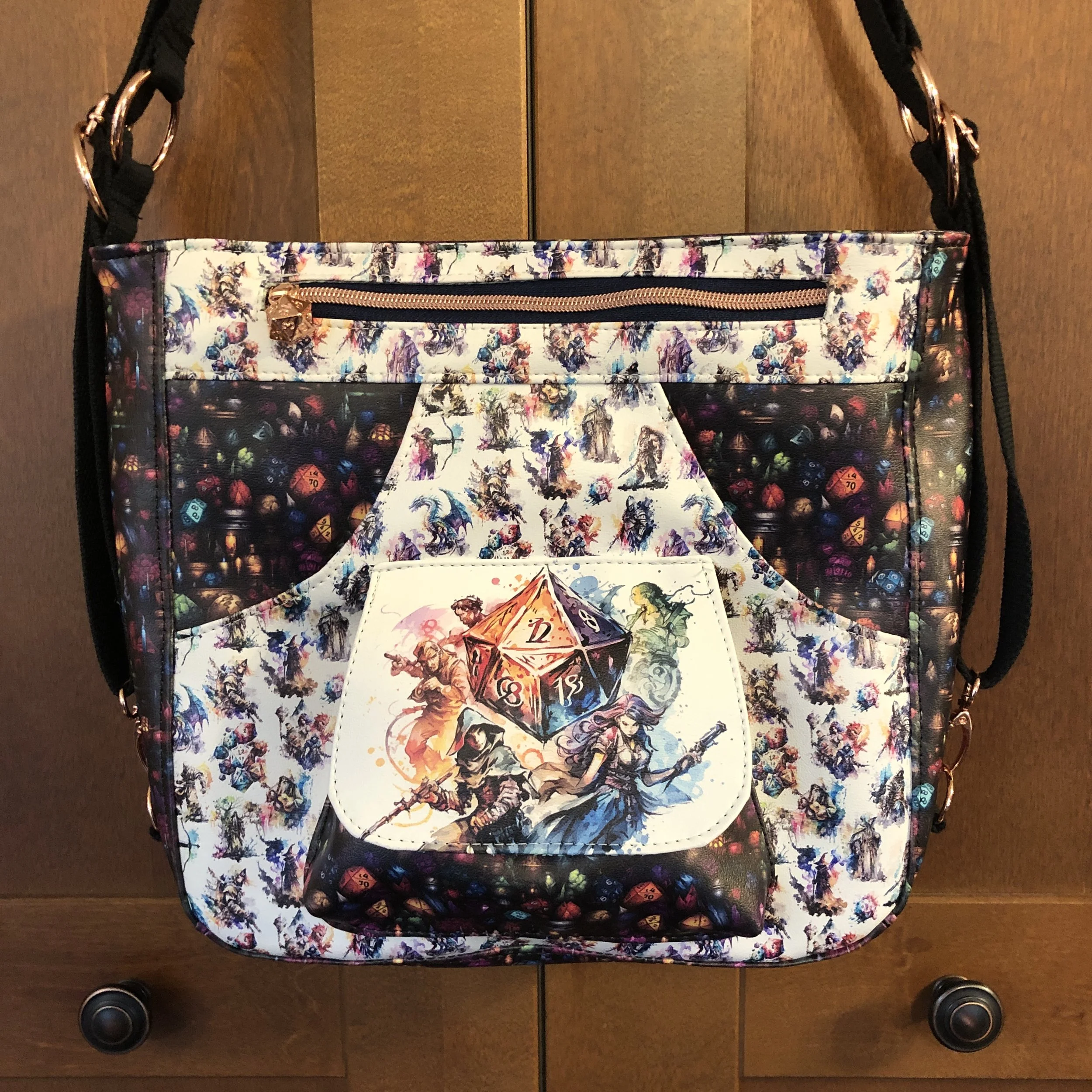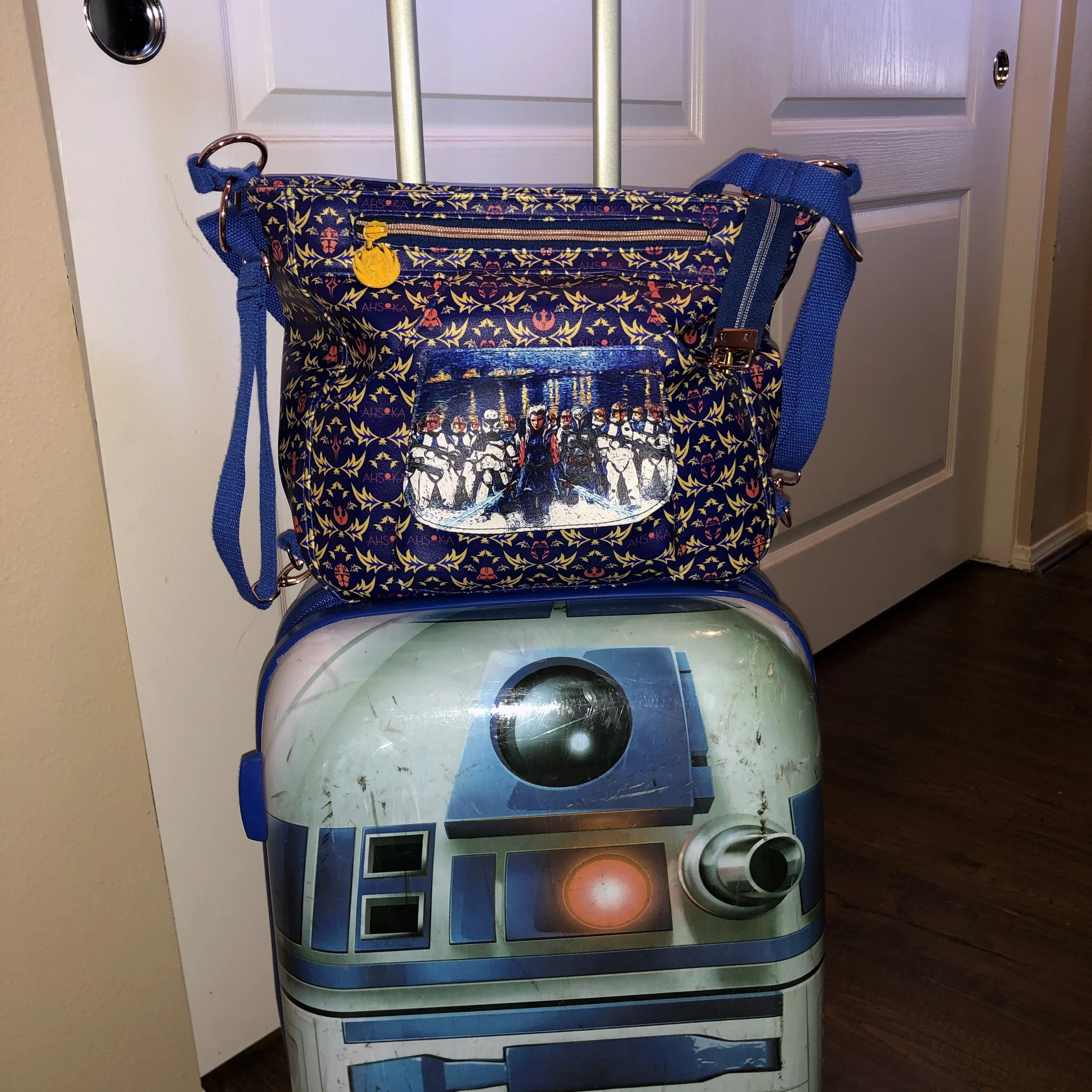 I recently had the chance to visit my son at his new college in New York. This was when I grabbed one of the convertible purses from my stock and made it mine. The first thing I realized was that the flat bottom made it extremely stable to set on top of my roller bag.