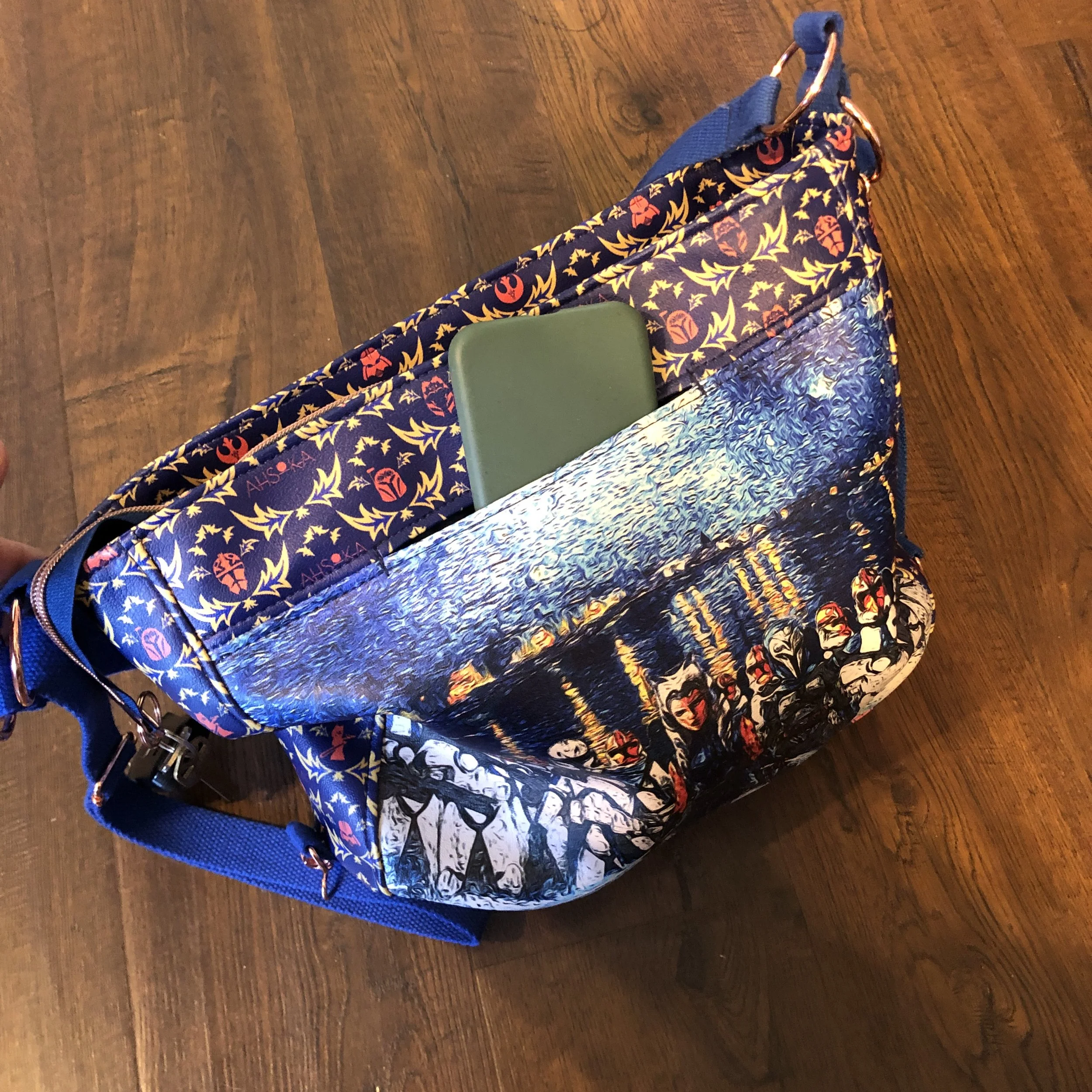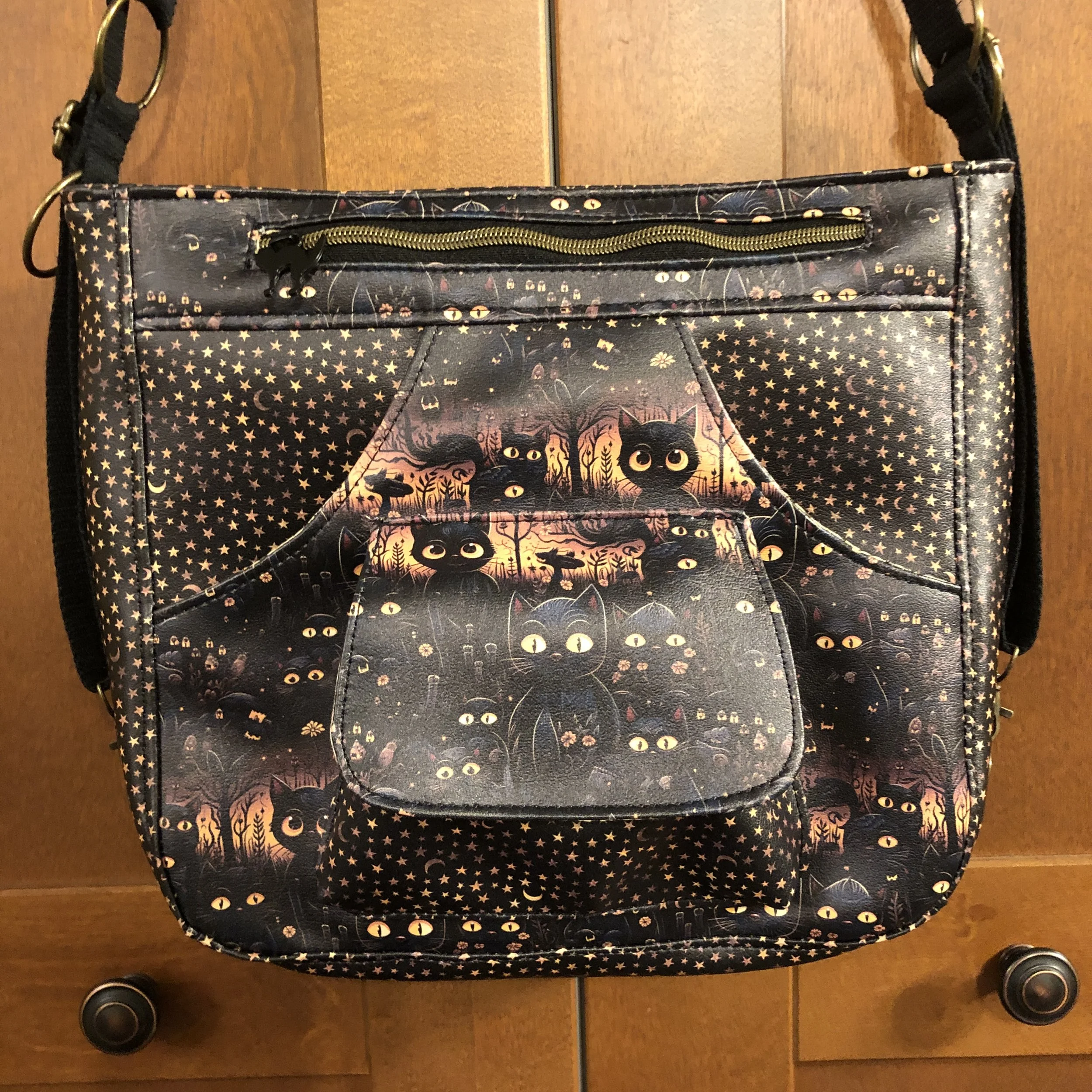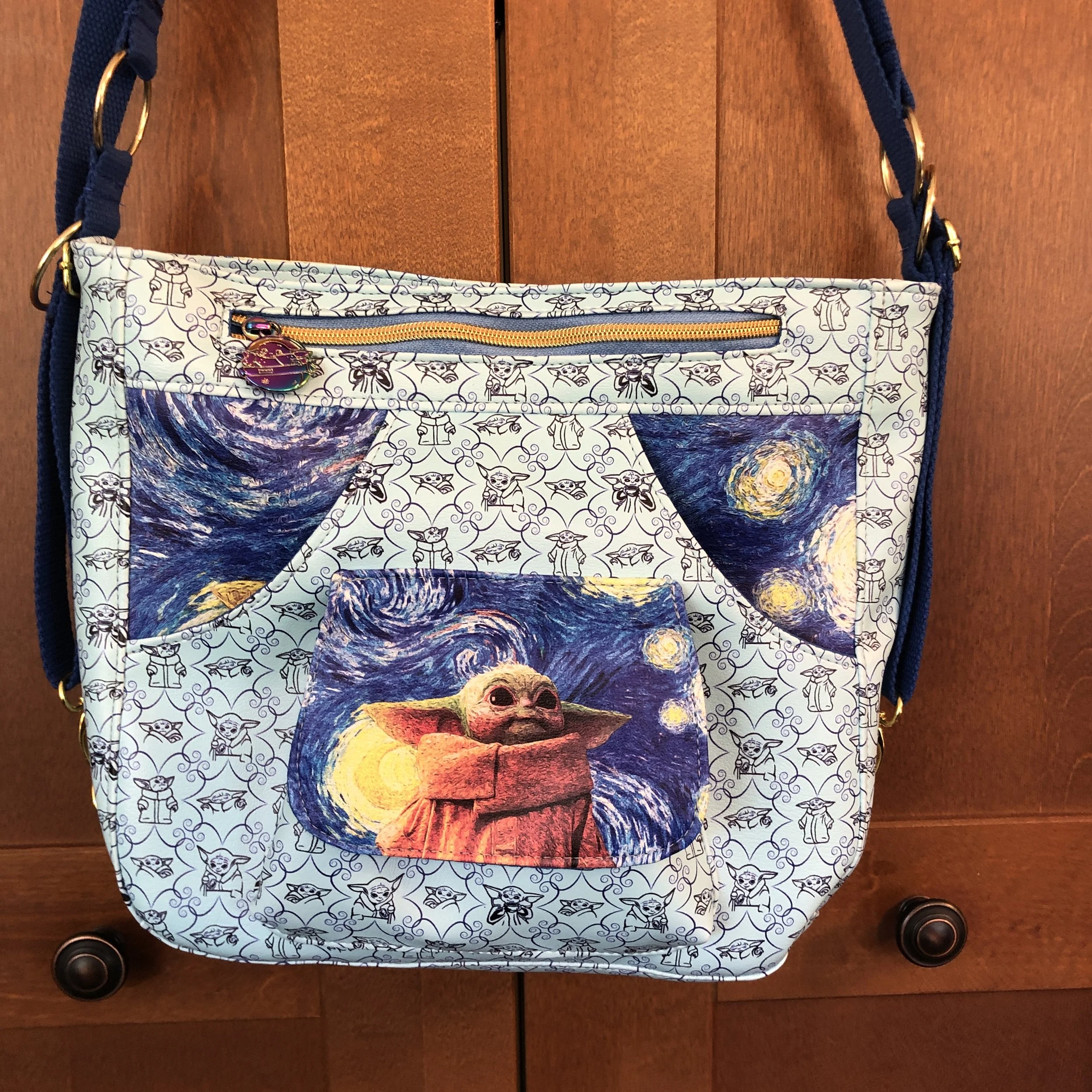 I have to confess, when sewing these and installing the cell phone pocket on the back, I always thought, “I’d never use that, I always put my phone in my jean’s pocket”. Well, I was wrong! A quick place to put your phone (like when using the restroom), became my most used feature of this bag.