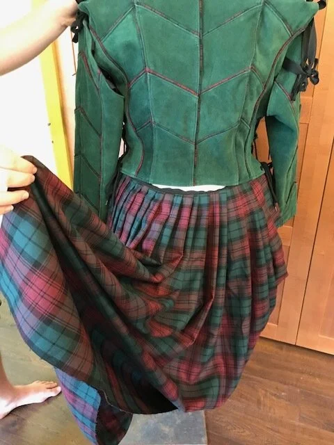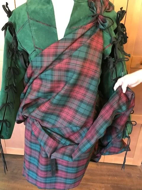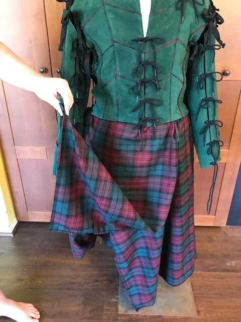 The left side of the top half of the kilt now needs to be tucked back. I like to roll it up a bit and then bring it back towards your hip.